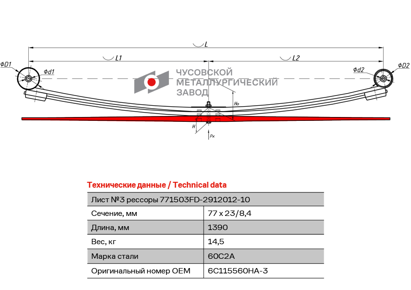 771503FD2912103 OMK AUTO Лист 3 задней рессоры FORD TRANSIT 2006 г.- (прямой) АНАЛОГ 1721790