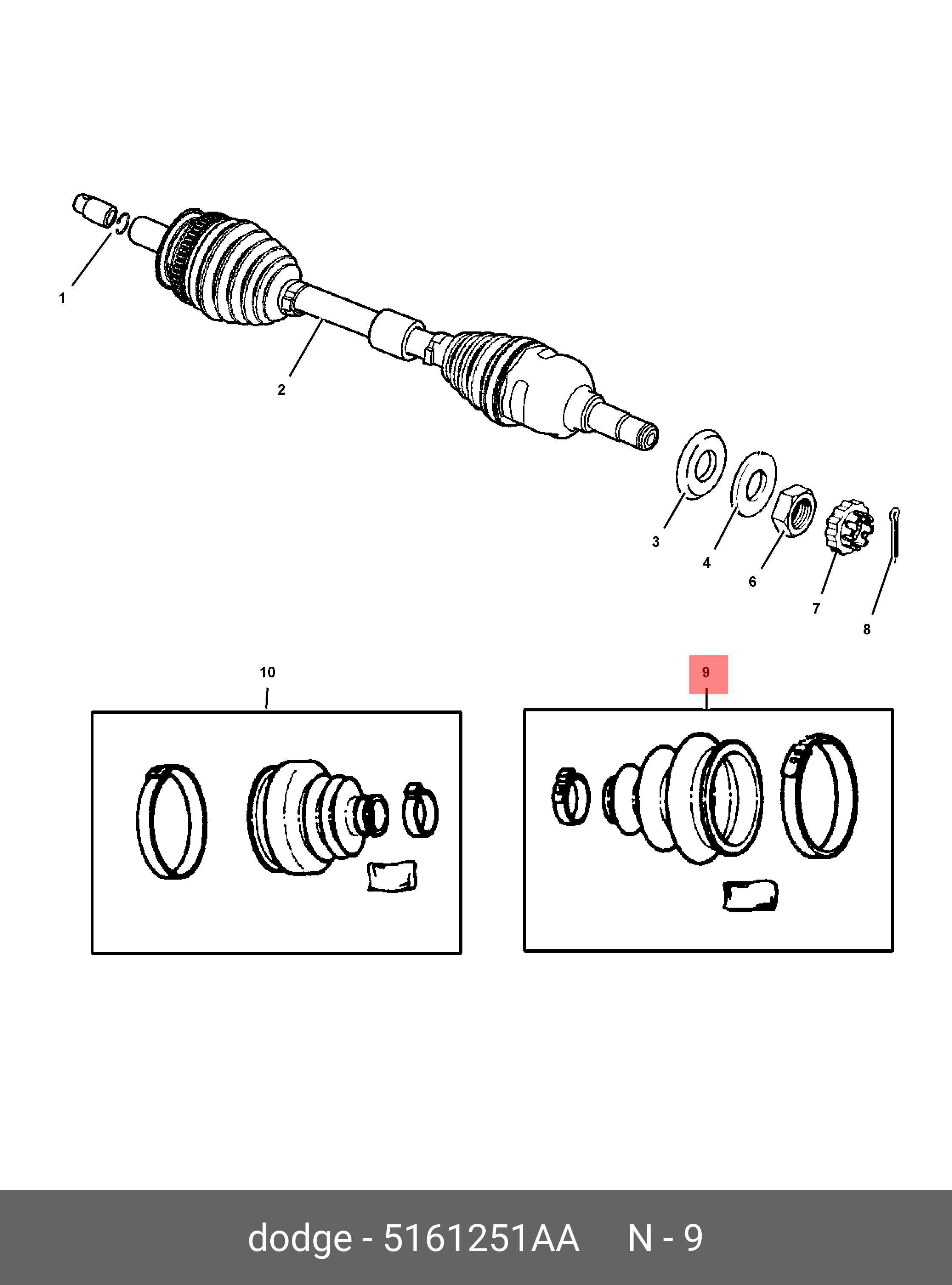 5161 251AA CHRYSLER DODGE JEEP Пыльник ШРУСа (комплект)