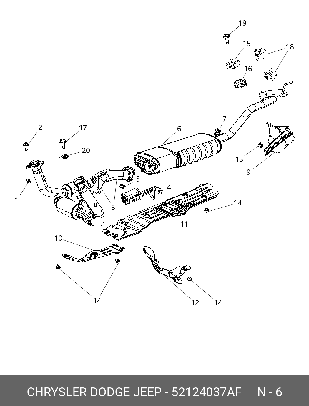52124 037AF CHRYSLER DODGE JEEP Глушитель - задняя часть системы ОГ