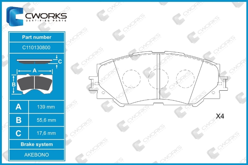 C110130800 CWORKS КОЛОДКИ ТОРМОЗНЫЕ ПЕРЕДНИЕ TOYOTA TSUSHO COROLLA 1