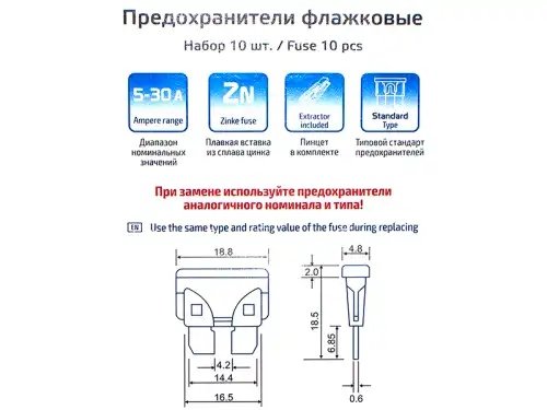 | Наименование | Предохранители флажковые 1х5А+1х7.5А+2х10А+2х15А+2х20А+1х25А+1х30А=10шт. с пинце |
