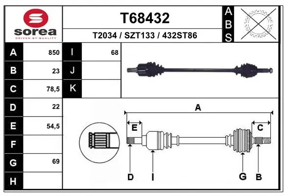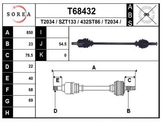 T68432 EAI Вал привода колеса в сборе с ШРУСами