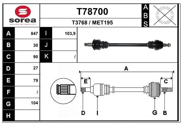 T78700 EAI Вал привода колеса в сборе с ШРУСами