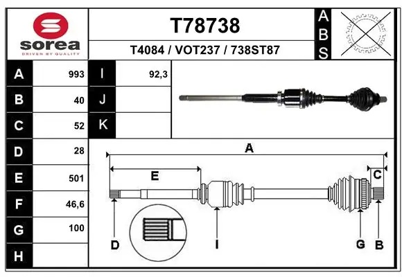 T78738 EAI Вал привода колеса в сборе с ШРУСами