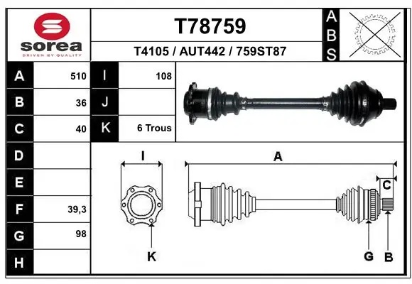 T78759 EAI Вал привода колеса в сборе с ШРУСами