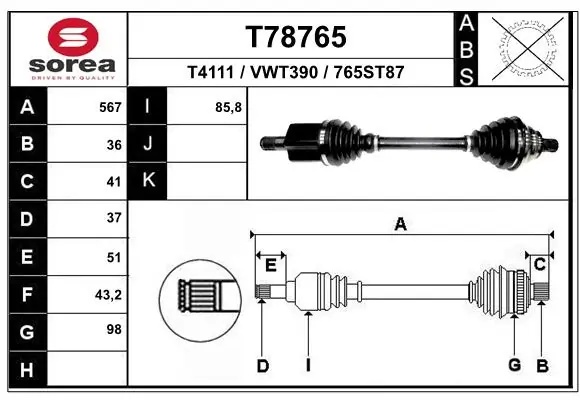 T78765 EAI Вал привода колеса в сборе с ШРУСами
