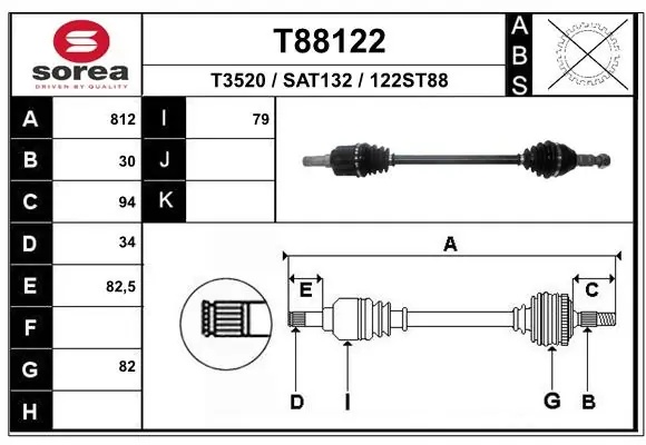 T88122 EAI Вал привода колеса в сборе с ШРУСами