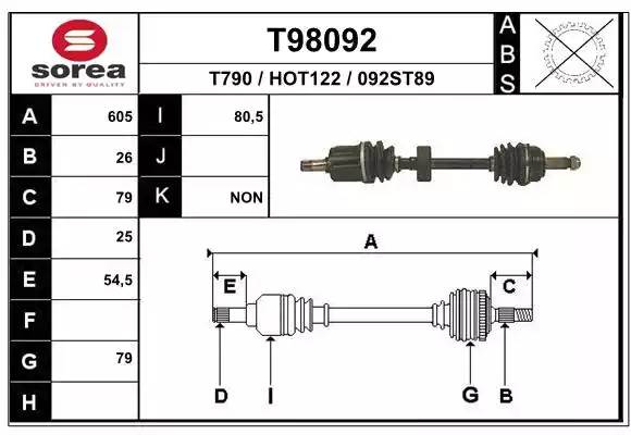 T98092 EAI Вал привода колеса в сборе с ШРУСами