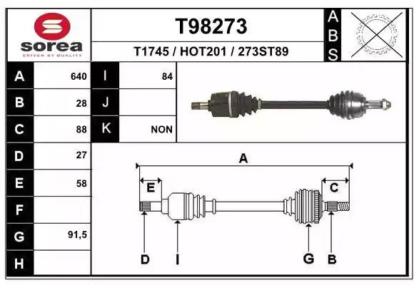 T98273 EAI Вал привода колеса в сборе с ШРУСами