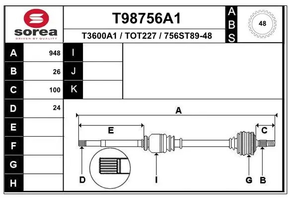 T98756A1 EAI Вал привода колеса в сборе с ШРУСами