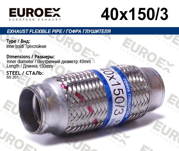 40X150/3 EUROEX Гофра глушителя 40x150 3-х слойная