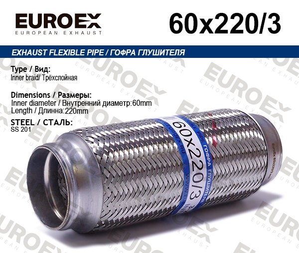 60X220/3 EUROEX Сильфон - гофра гибкая системы выпуска ОГ
