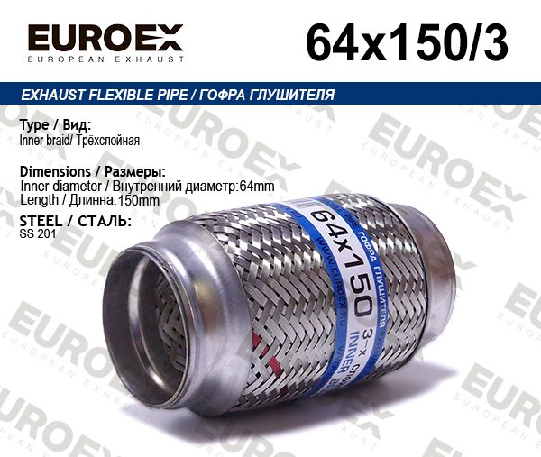 64X150/3 EUROEX Гофра глушителя 64x150 3-х слойная