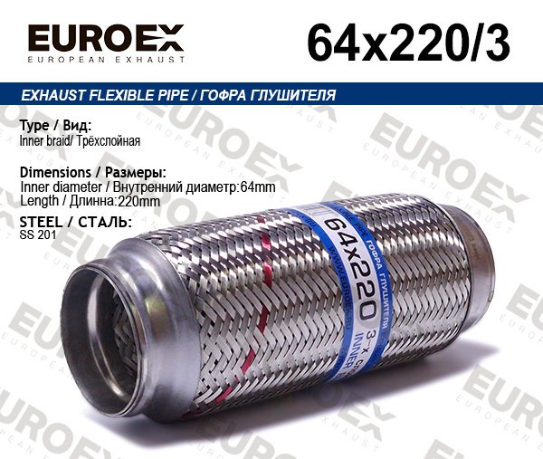 64X220/3 EUROEX Сильфон - гофра гибкая системы выпуска ОГ