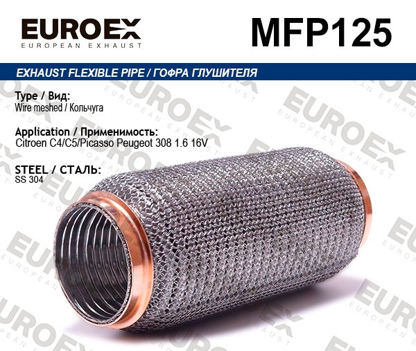 MFP125 EUROEX Гофра глушителя Citroen C4/C5/Picasso Peugeot 308 1.6 16V (Кольчуга)