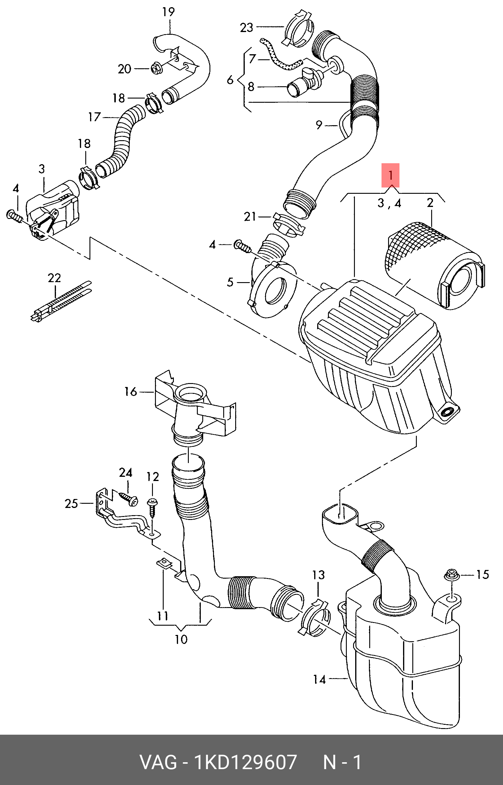 1KD 129 607 VAG Корпус воздушного фильтра с фильтром