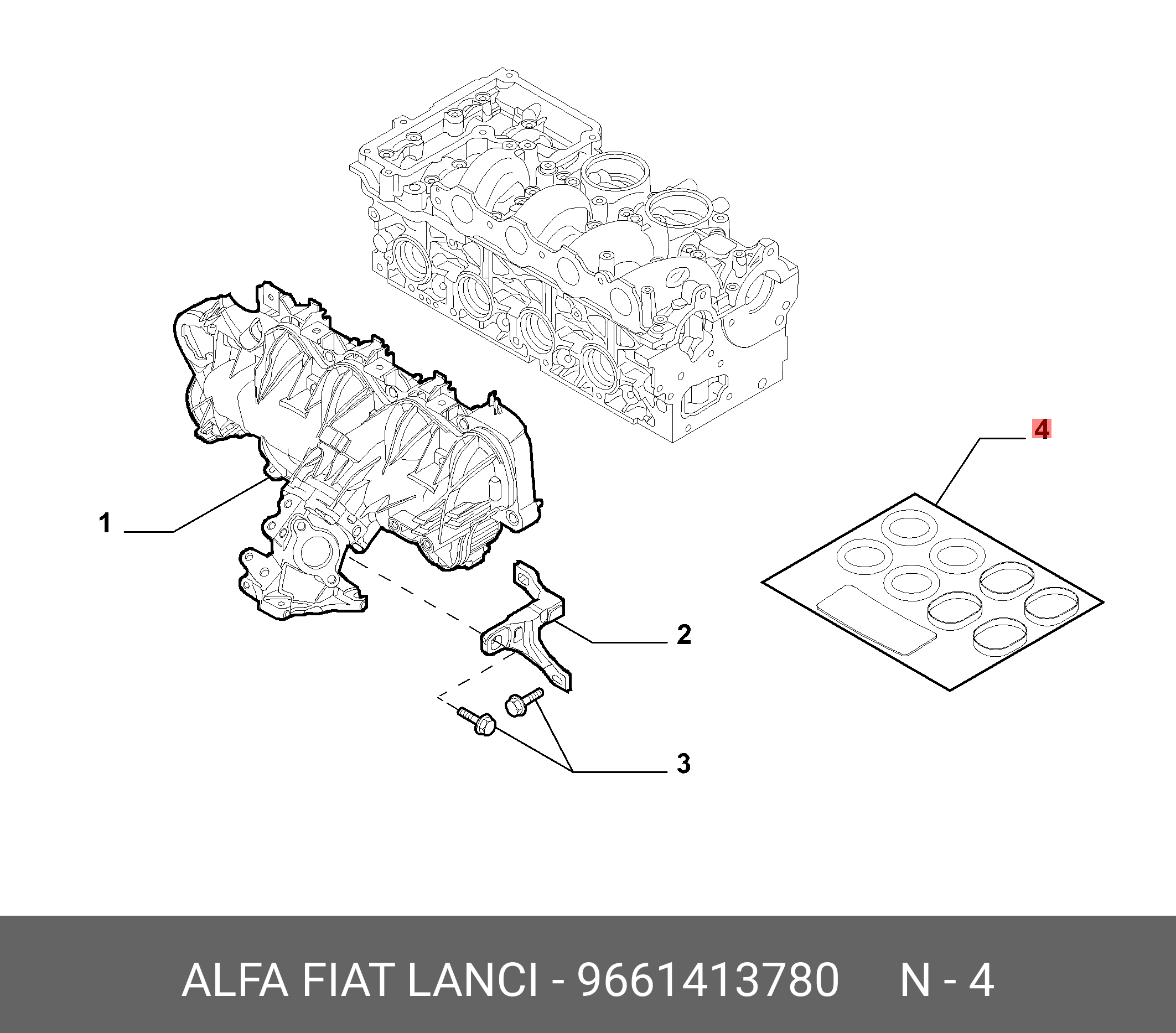 9661413780 ALFA FIAT LANCIA Прокладка впускного коллектора (комплект)