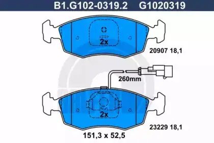 B1.G102-0319.2 GALFER Колодки тормозные дисковые