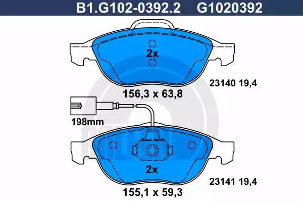 B1.G102-0392.2 GALFER Колодки тормозные дисковые
