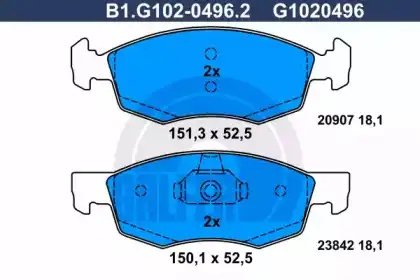 B1.G102-0496.2 GALFER Колодки тормозные дисковые
