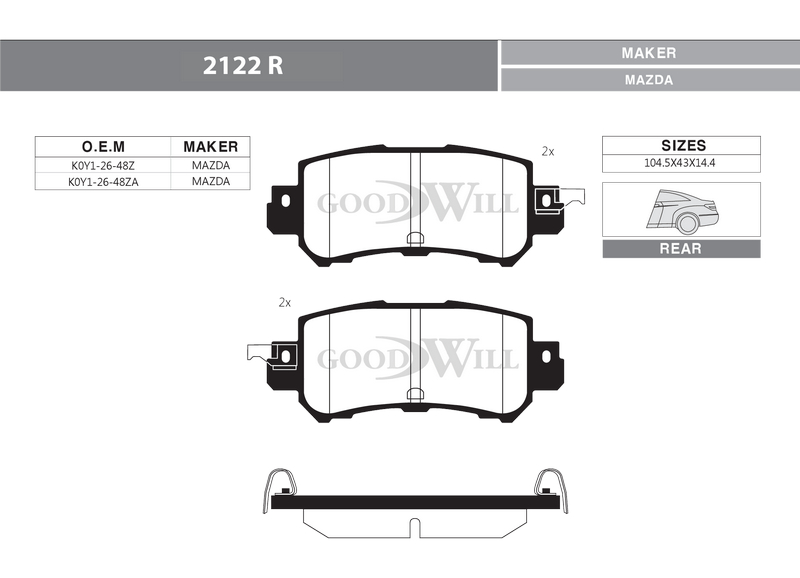 2122 R GOODWILL Колодки тормозные дисковые
