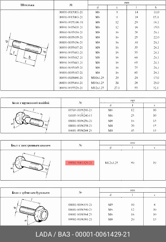 00001006142921 LADA VAZ Болт М12х1,25х80