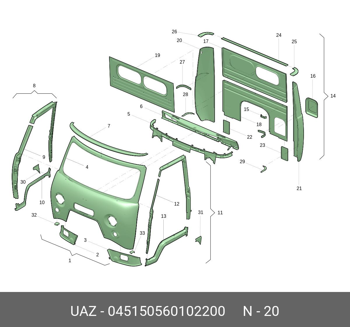 045150560102200 UAZ UAZ Панель кузова задняя