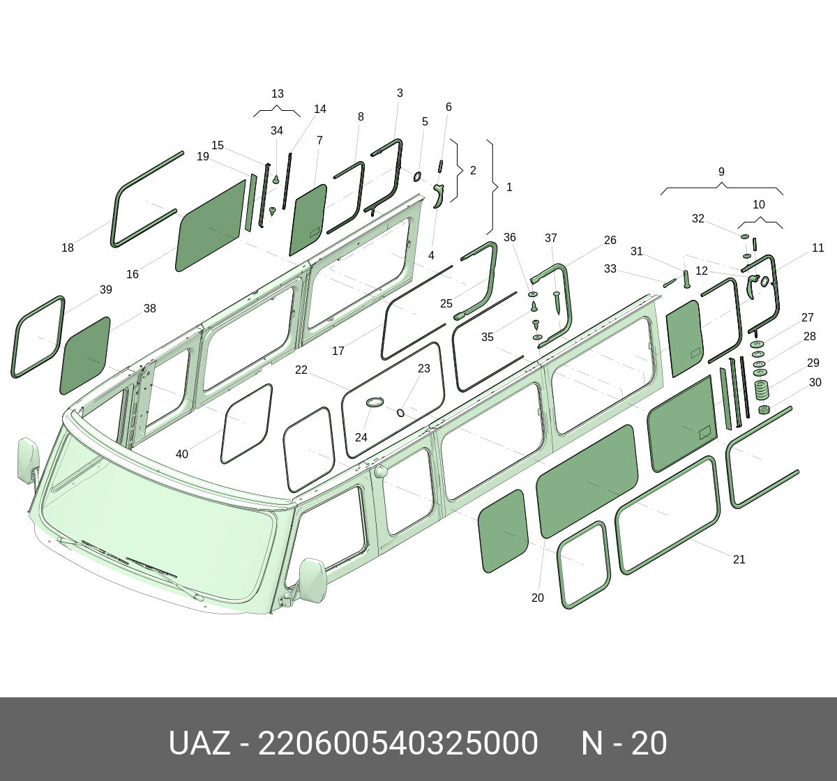220600540325000 UAZ UAZ Стекло УАЗ-452 и мод запасного выхода (цельное) (832*384) (ОАО "УАЗ")