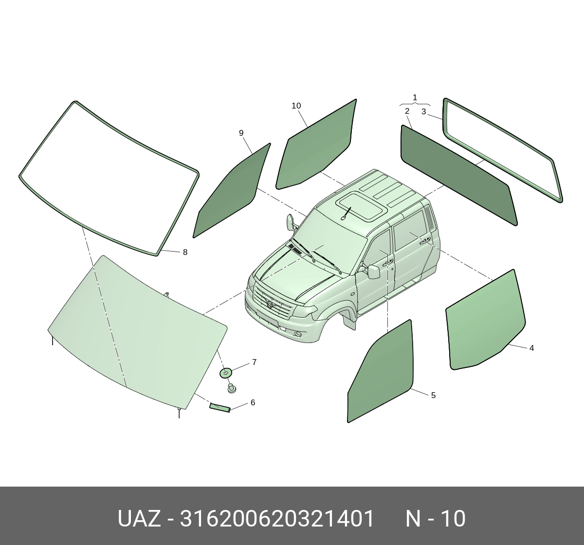 316200620321401 UAZ UAZ Стекло двери