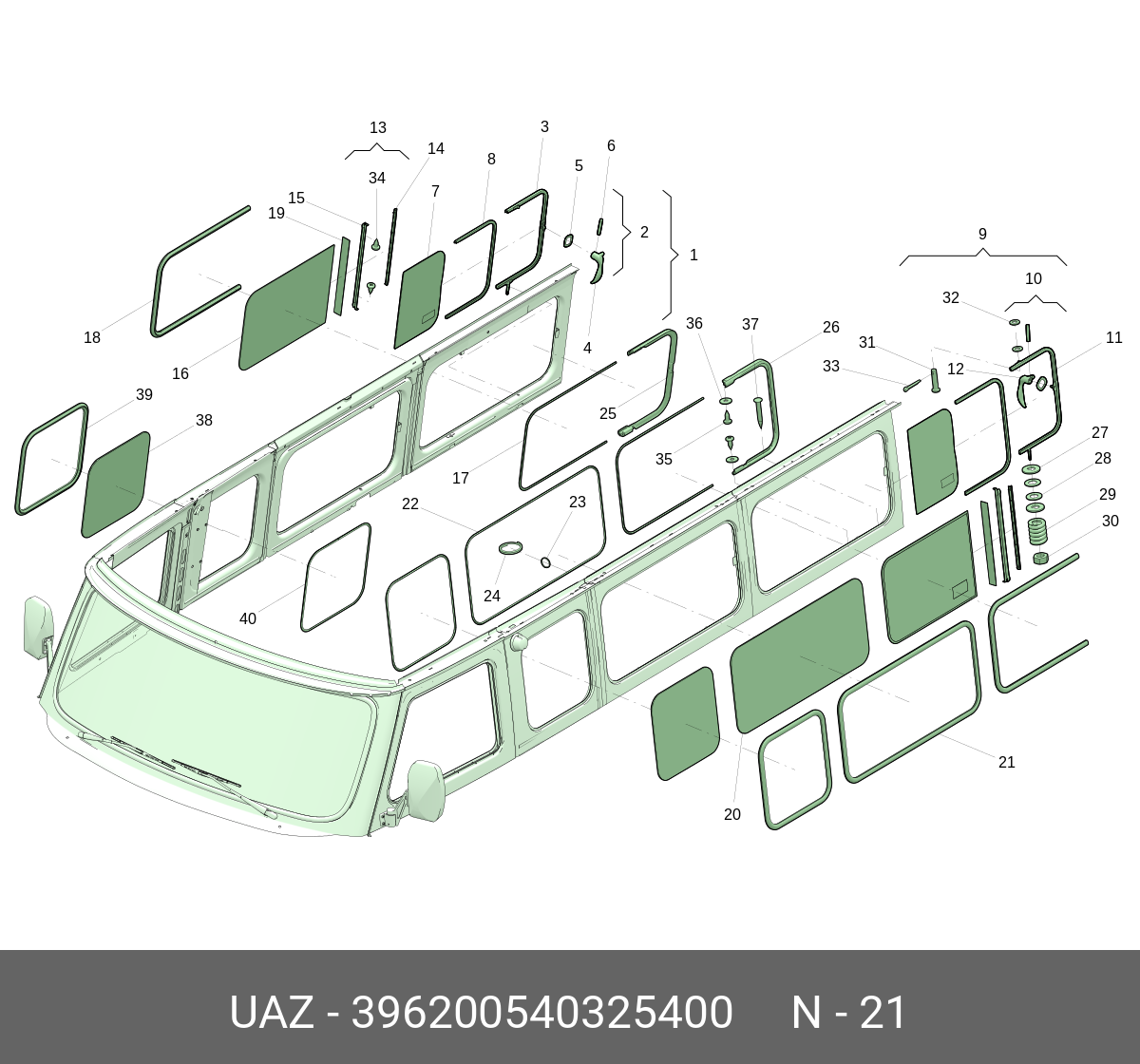 396200540325400 UAZ UAZ Уплотнитель стекла бокового