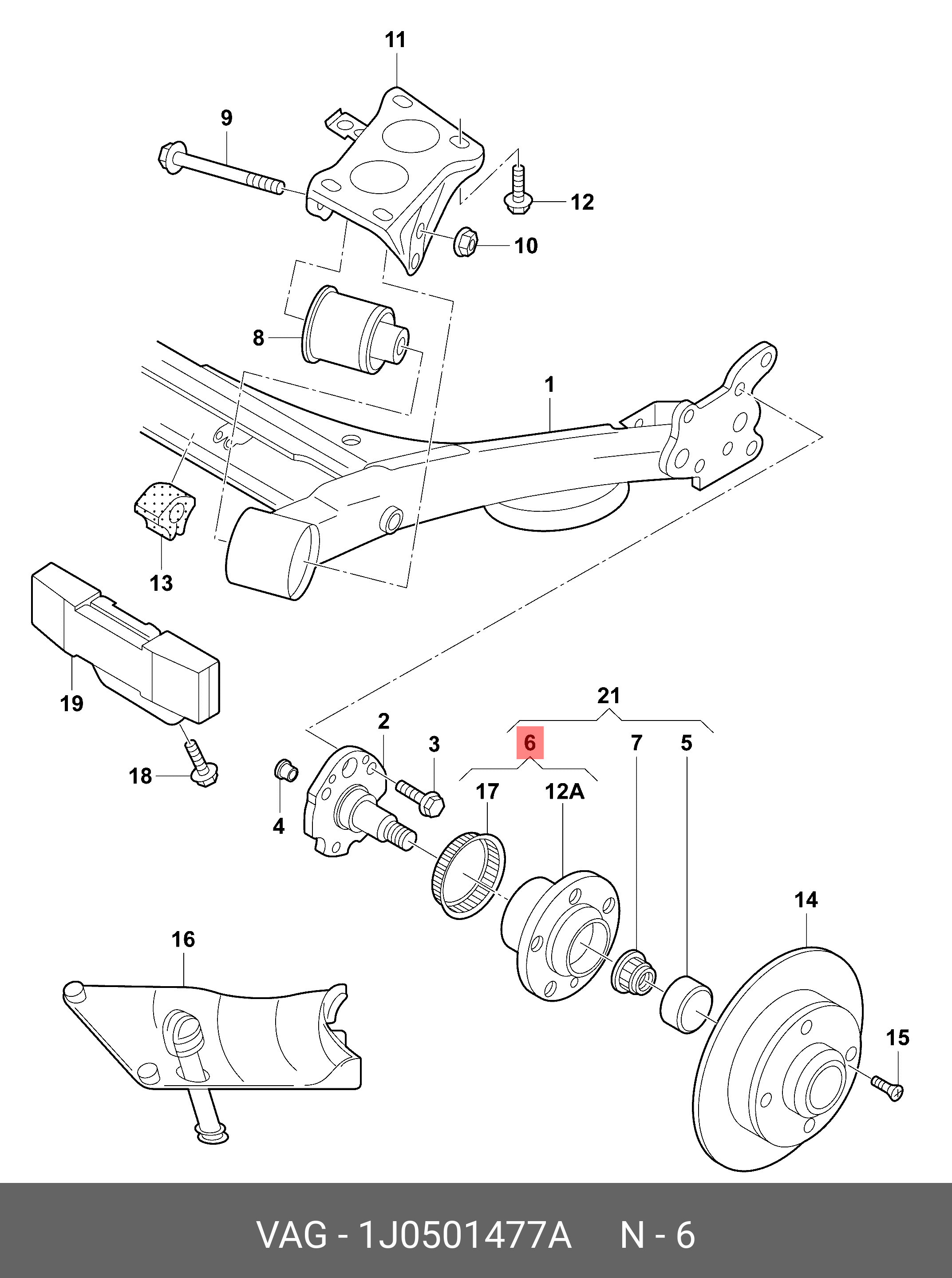1J0 501 477 A VAG Подшипник ступицы колеса со ступицей (комплект)